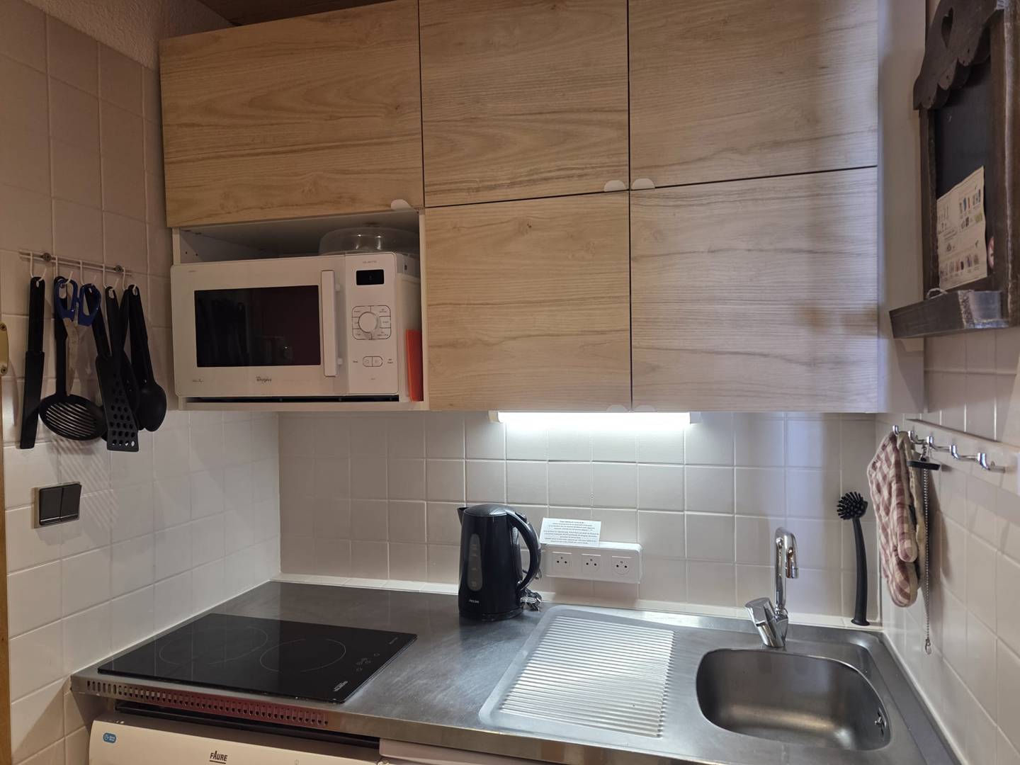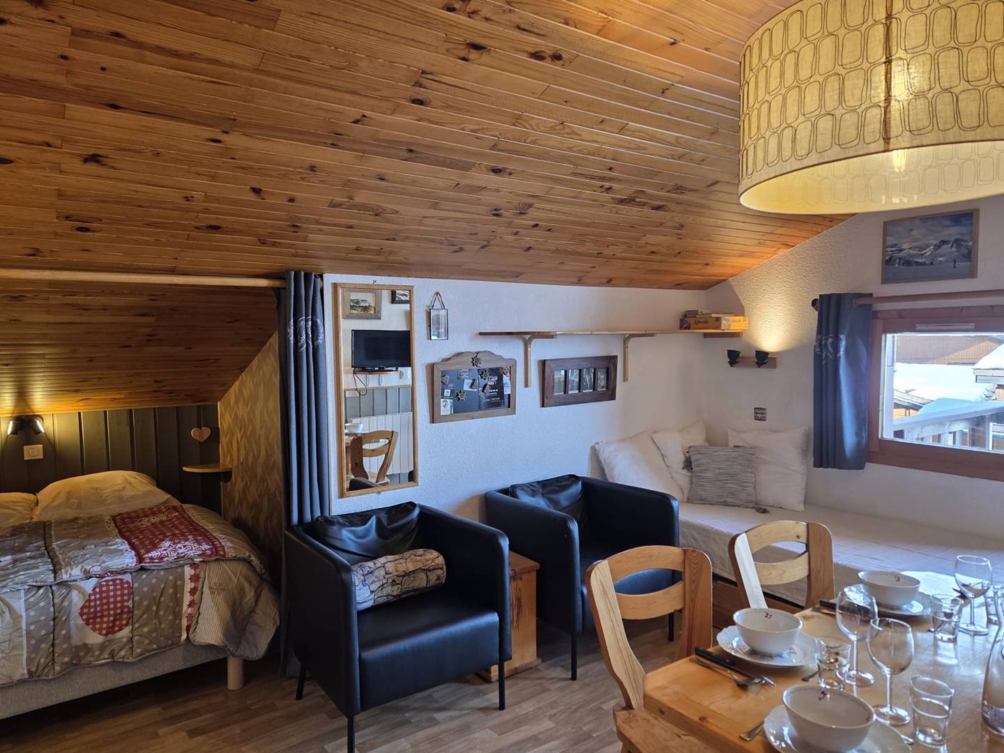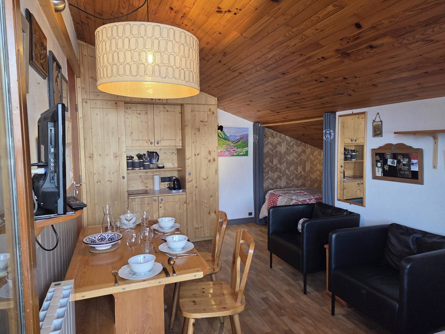 Hameau du Mottet - Studio, classified as 2 Suns, offering a view of the mountains. Apartment located close to the ESF, the slopes and the cable car. Services included: End-of-stay cleaning (except kitchen).