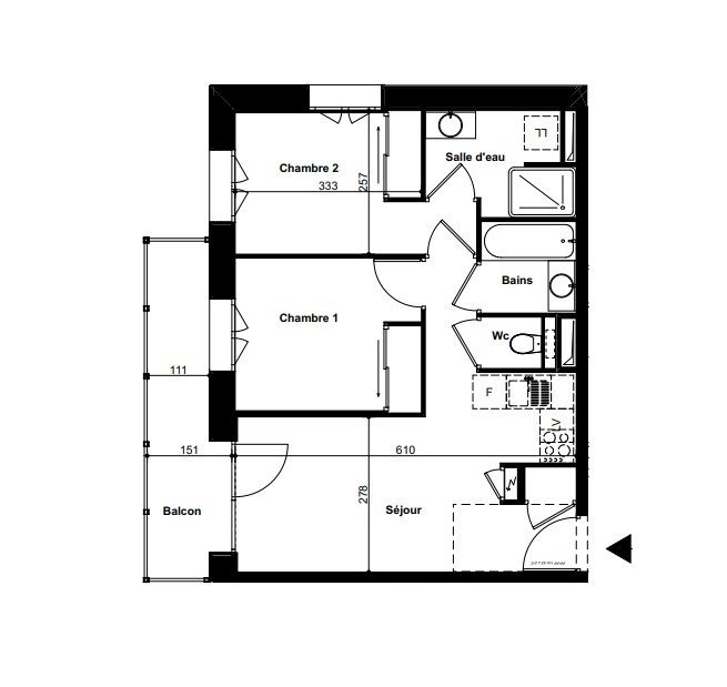 - Salle de bain : 2.80 m²