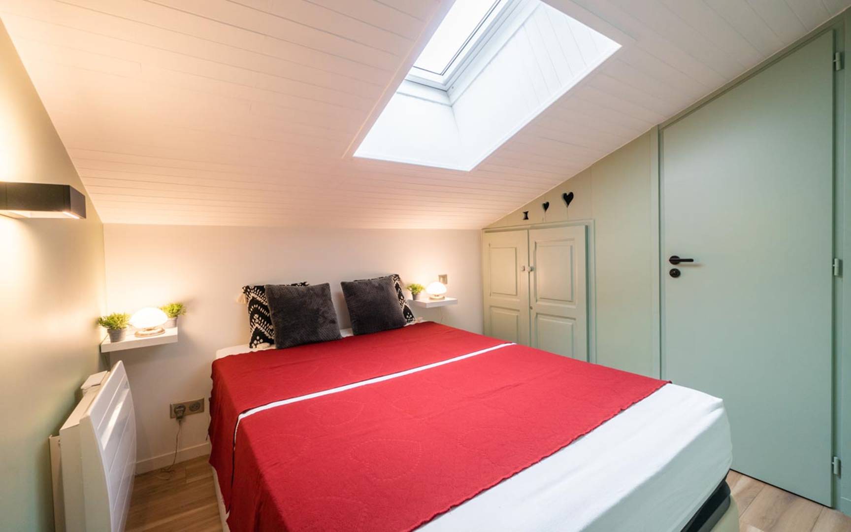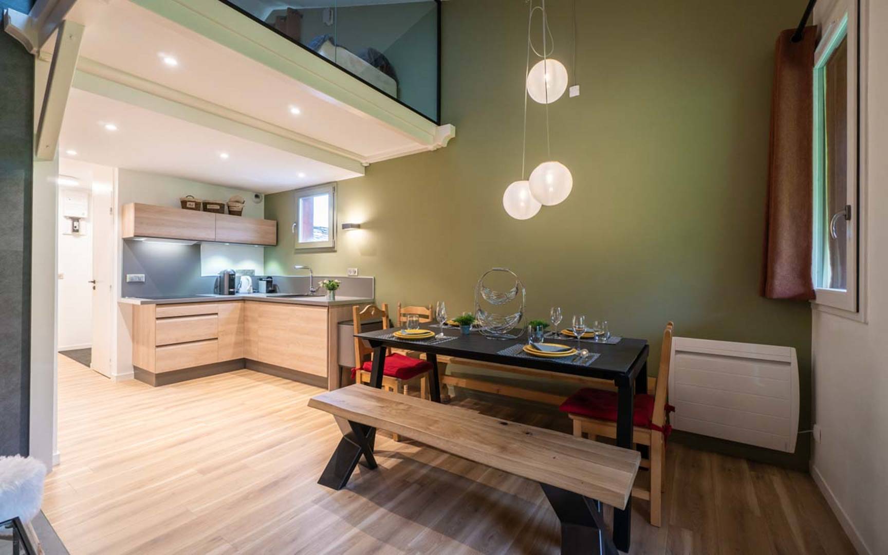 Hameau de Crève-Coeur - Charmant appartement de type 3 pièces Duplex entièrement rénové, d'une superficie de 60 m², situé au 5ème étage, avec ascenseur, de la résidence LES LAUZES, pouvant accueillir jusqu'à 7 personnes. Entrée avec placard, cuisine ouverte sur espace repas avec poêle à bois, chambre 1 avec 1 lit double, salle de bain et wc indépendants, A l'étage, une chambre avec un lit double (2 couchages), un salon avec canapé et un dortoir avec 1 lit simple et un jeu de lit superposé, wc indépendant. Balcon indépendant orienté sud-est offrant une jolie vue sur la piste de Planchamp. Service inclus : Ménage de fin de séjour (sauf cuisine), linge de lit (sauf saison d'été*) * de juin à septembre. Casier à skis. APPARTEMENT NON FUMEUR. ANIMAUX NON ACCEPTÉS. Possibilité de louer une place de parking intérieure ou extérieure. Nous consulter.