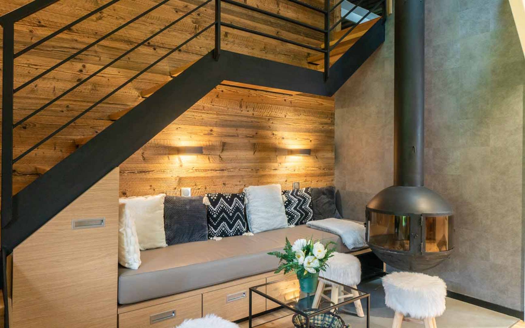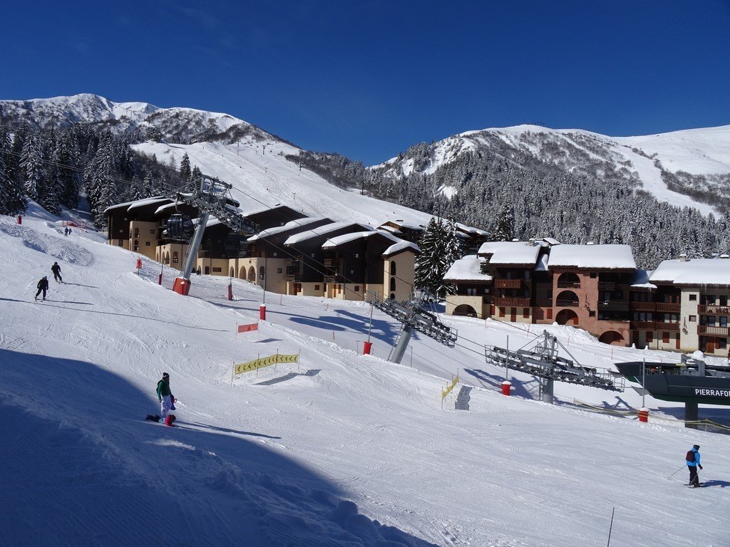 Hameau de Crève-Coeur - 3 pièces Duplex, classé en catégorie 4 soleils, offrant une jolie vue sur la piste de pierrafort. Service inclus : Ménage de fin de séjour (sauf cuisine), linge de lit (sauf saison d'été*) * de juin à septembre. Appartement situé à proximité immédiate de la télécabine de Pierrafort et des commerces de Crève Coeur.