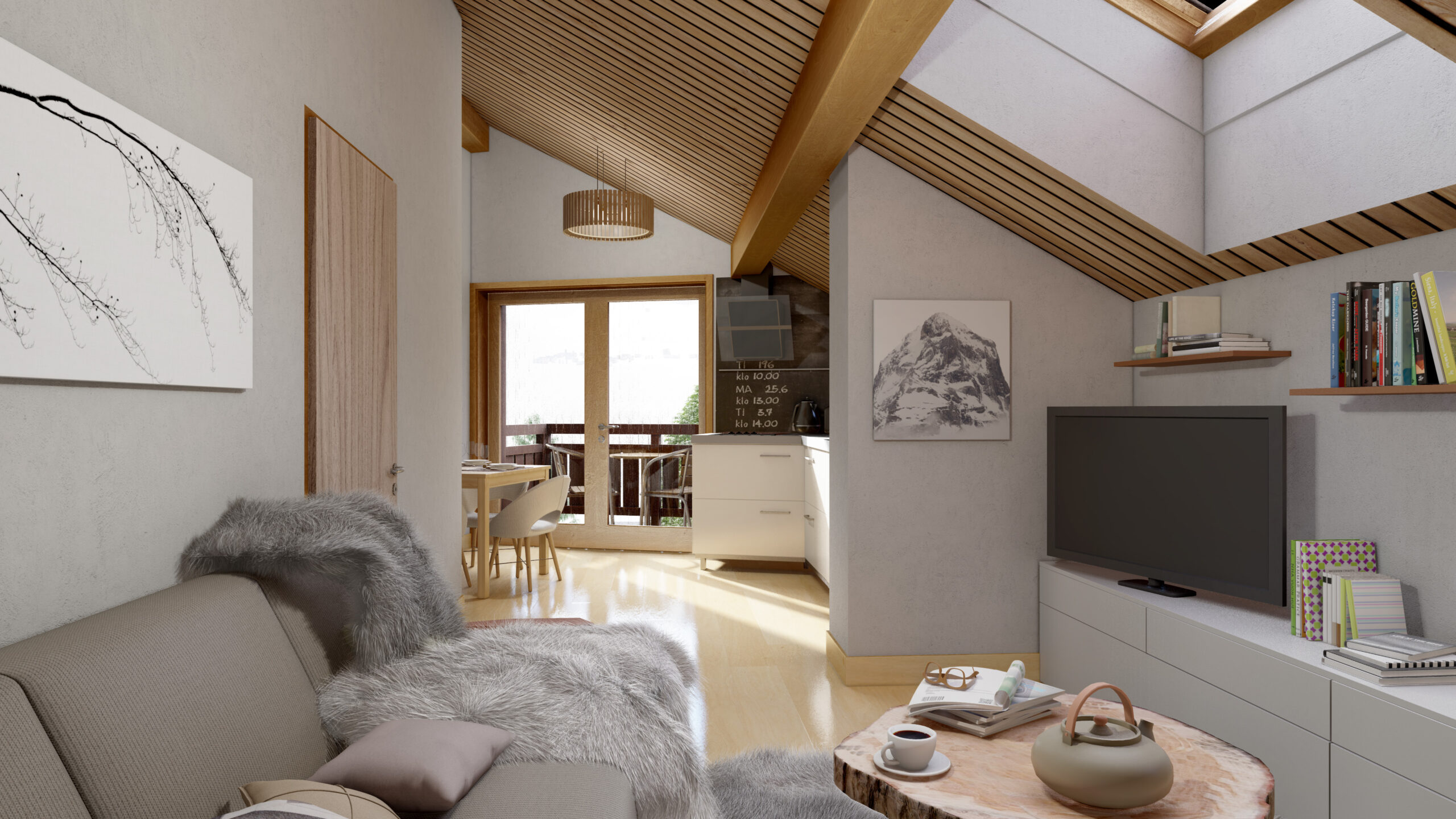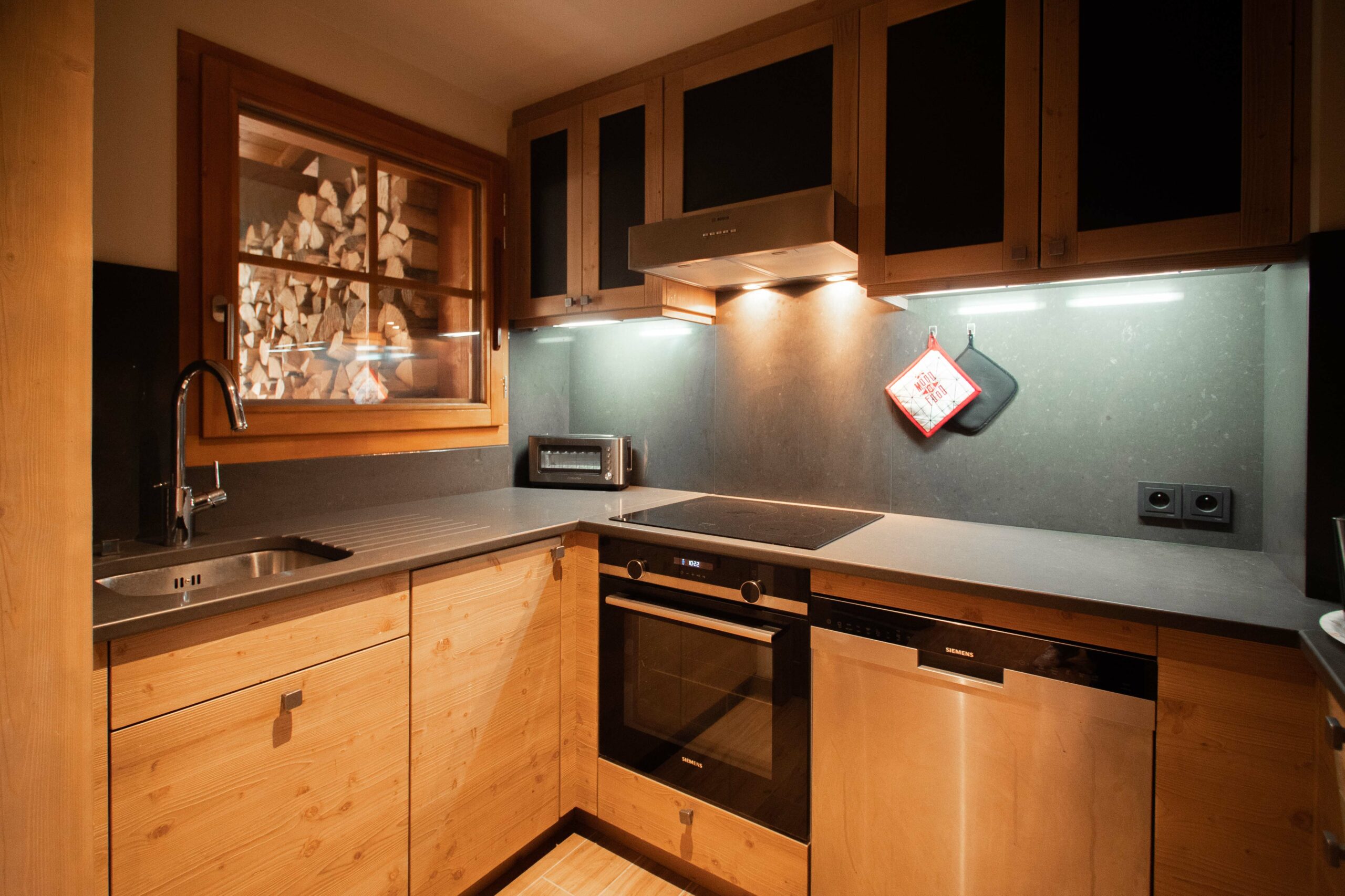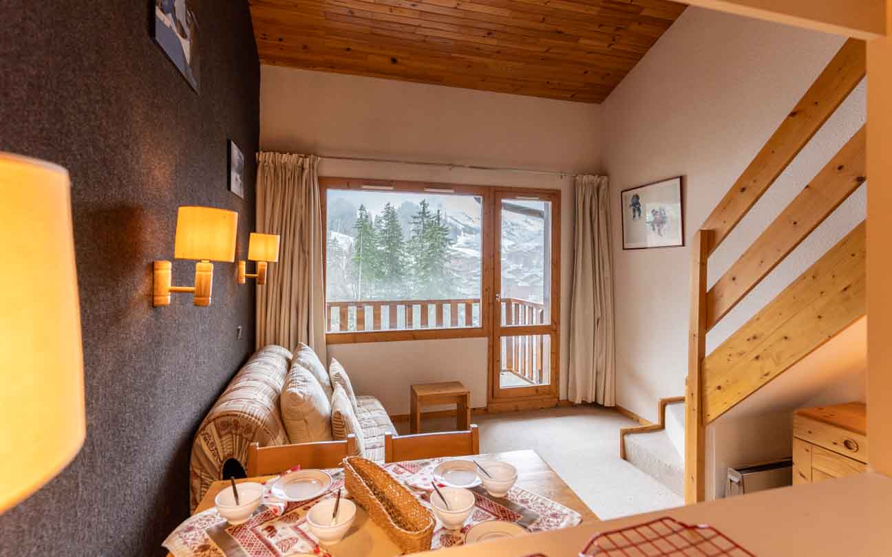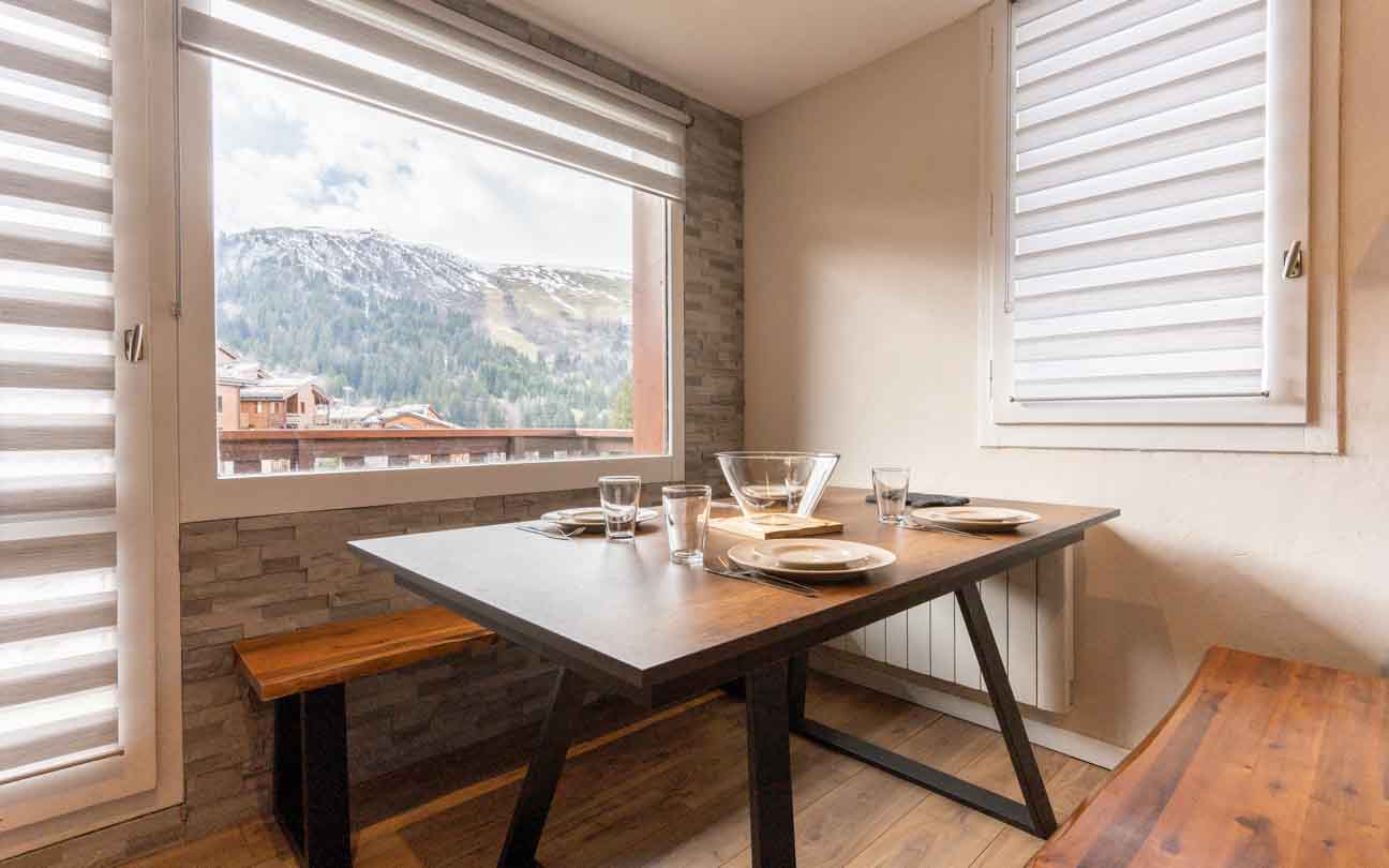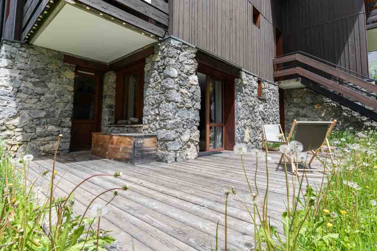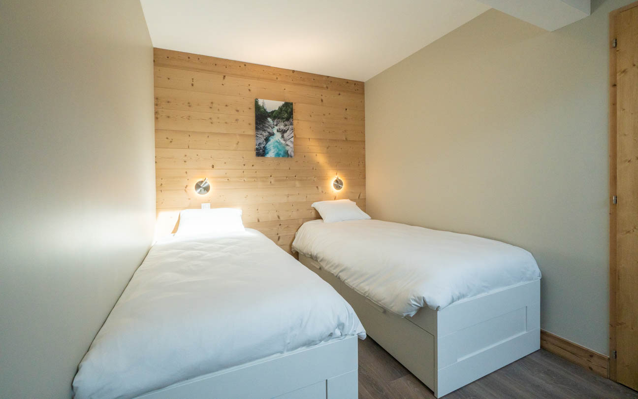 Appartements du 3 Pièces au 5 Pièces Duplex à partir de 579 000 € vendus avec cuisine équipée, cave, ski room et emplacement de stationnement intérieur en sous-sol, accès direct par ascenseur.