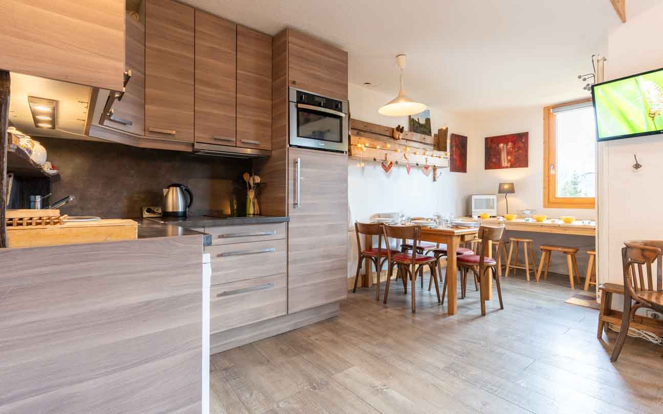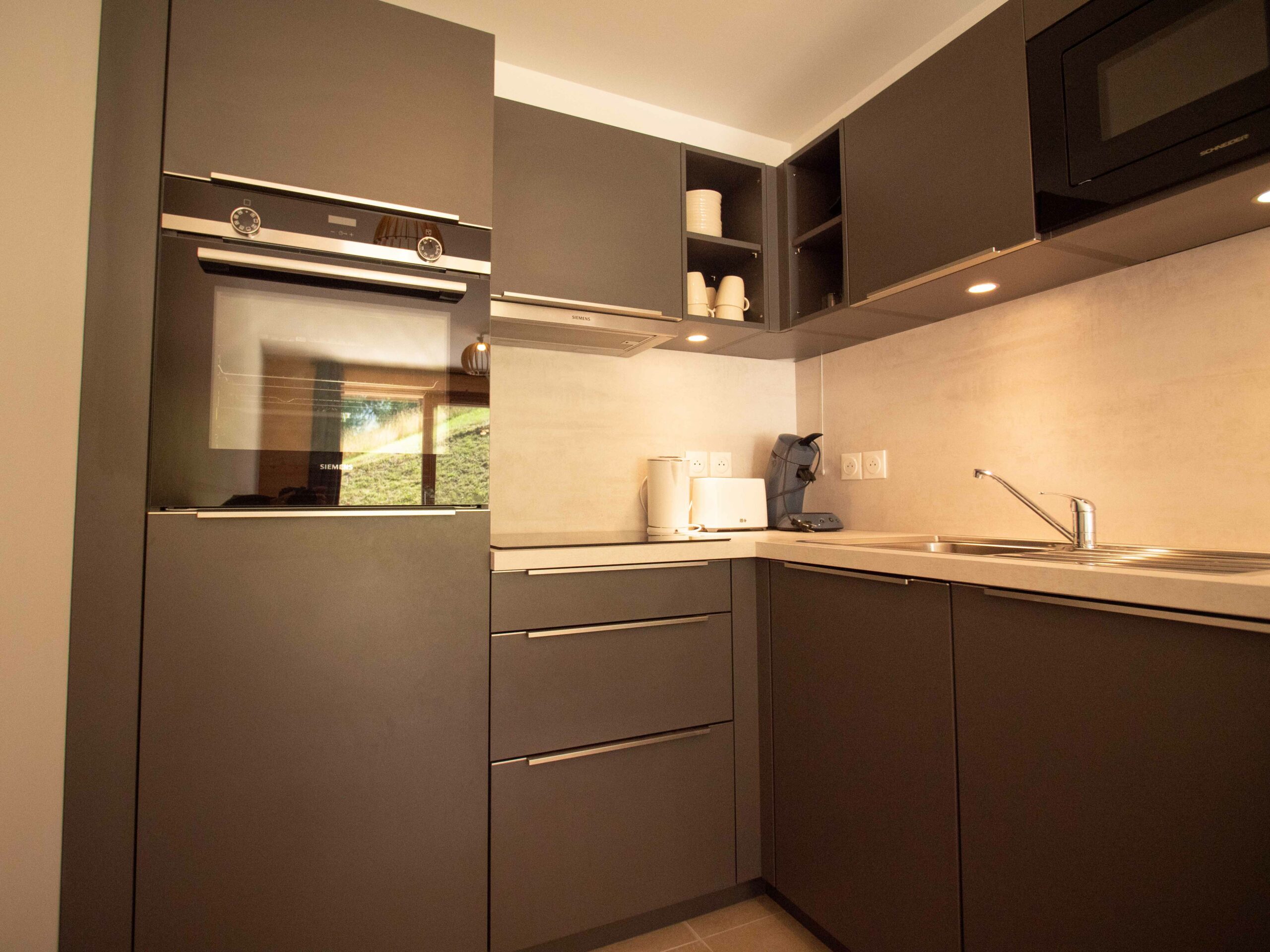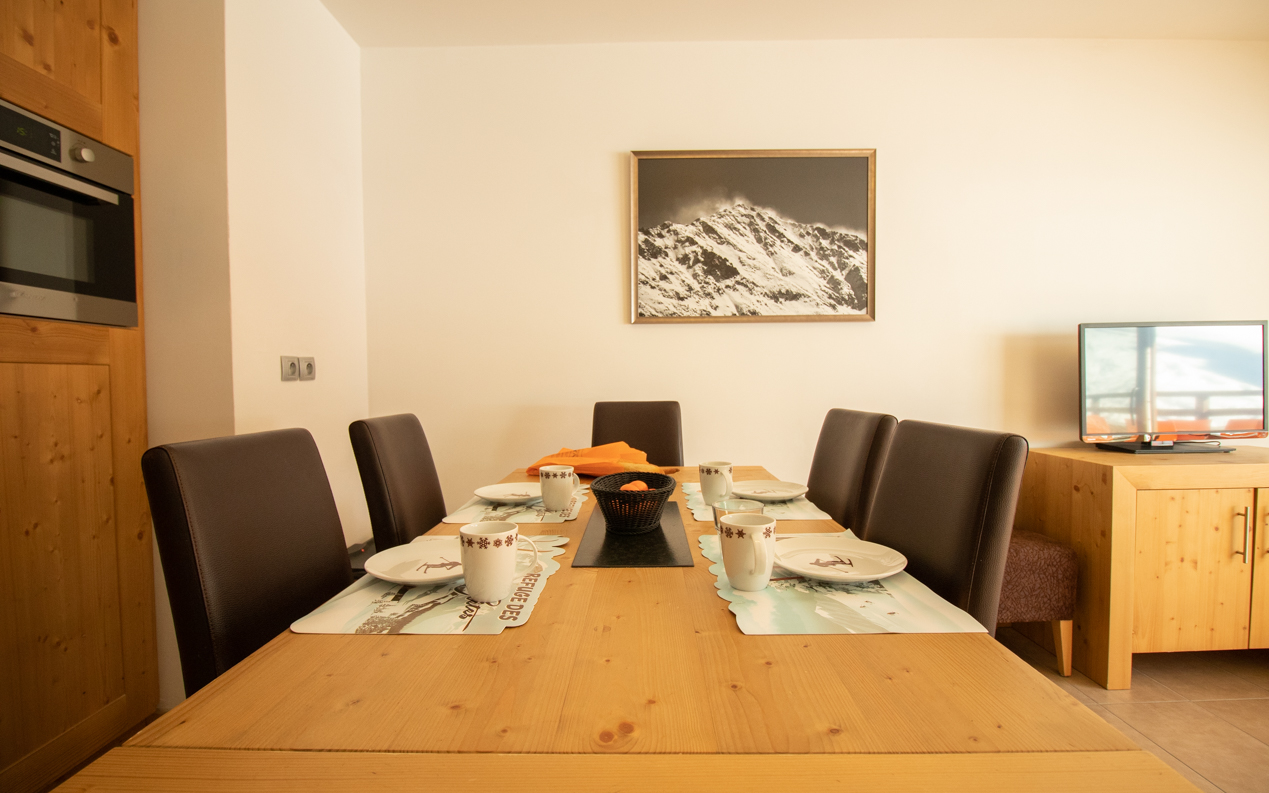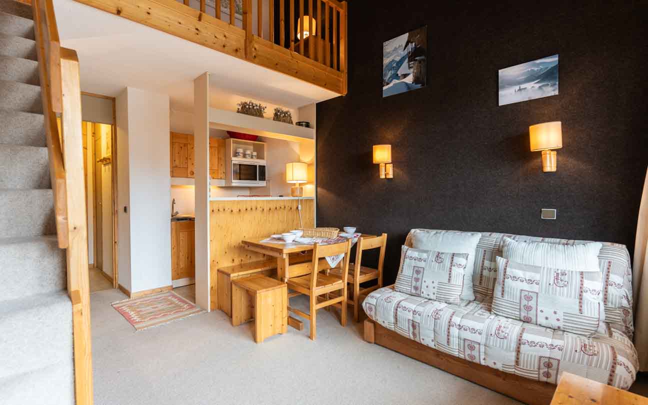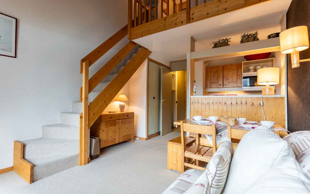 Appartements du 3 Pièces au 5 Pièces Duplex à partir de 579 000 € vendus avec cuisine équipée, cave, ski room et emplacement de stationnement intérieur en sous-sol, accès direct par ascenseur.