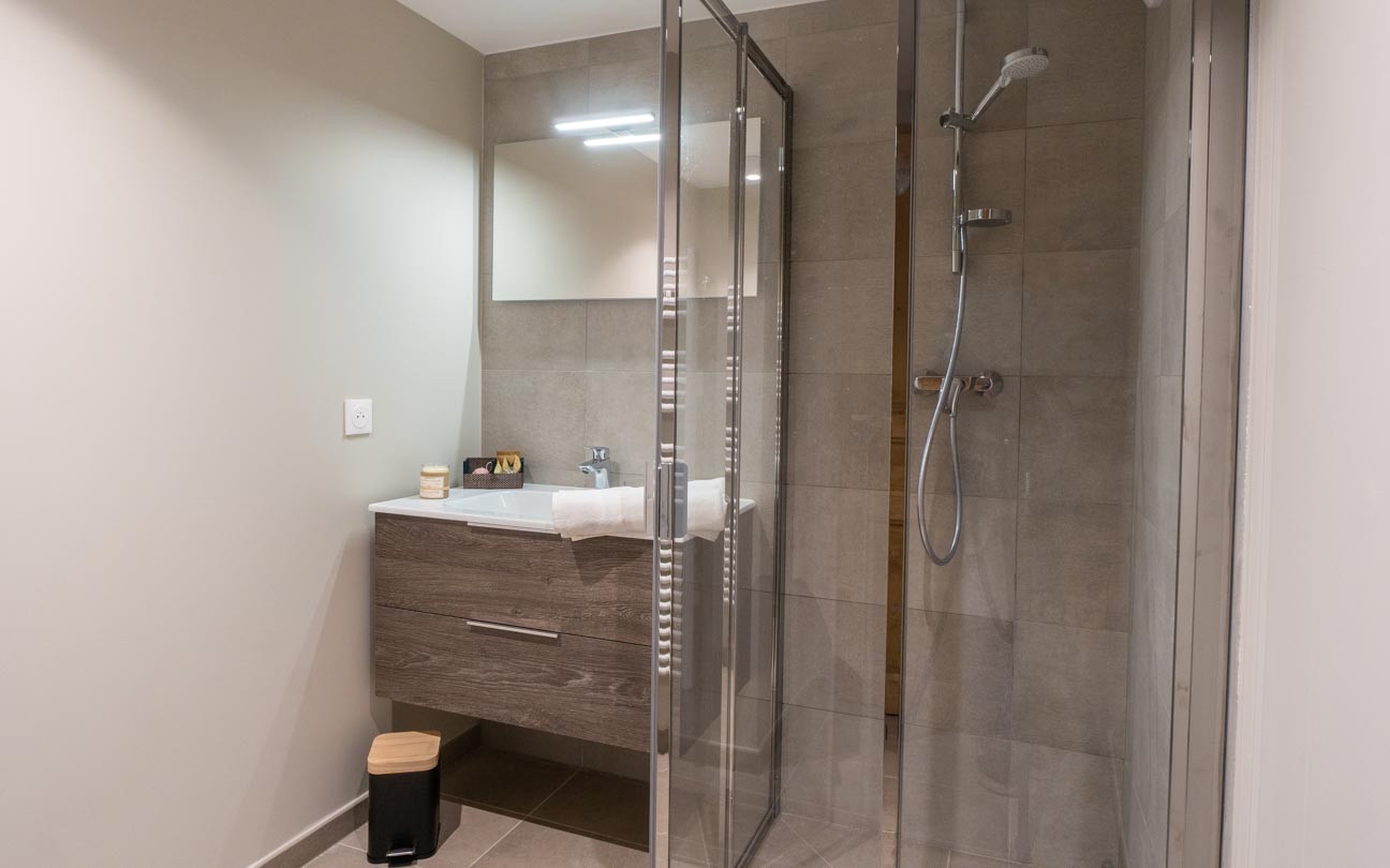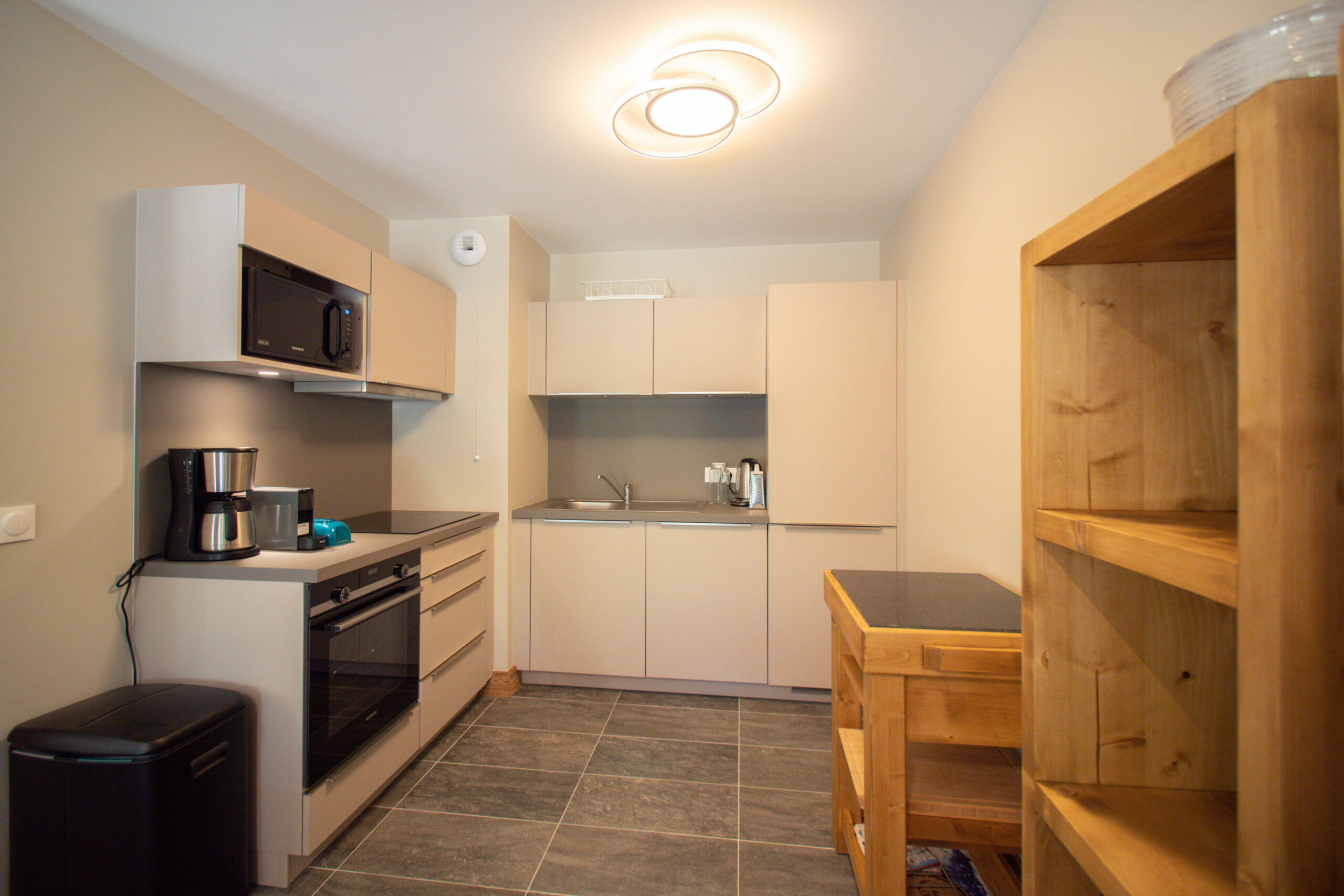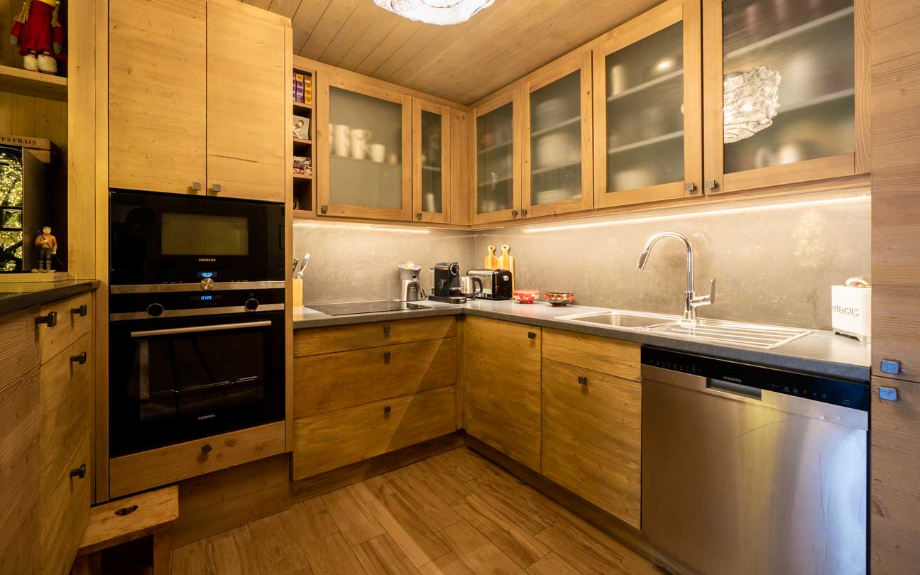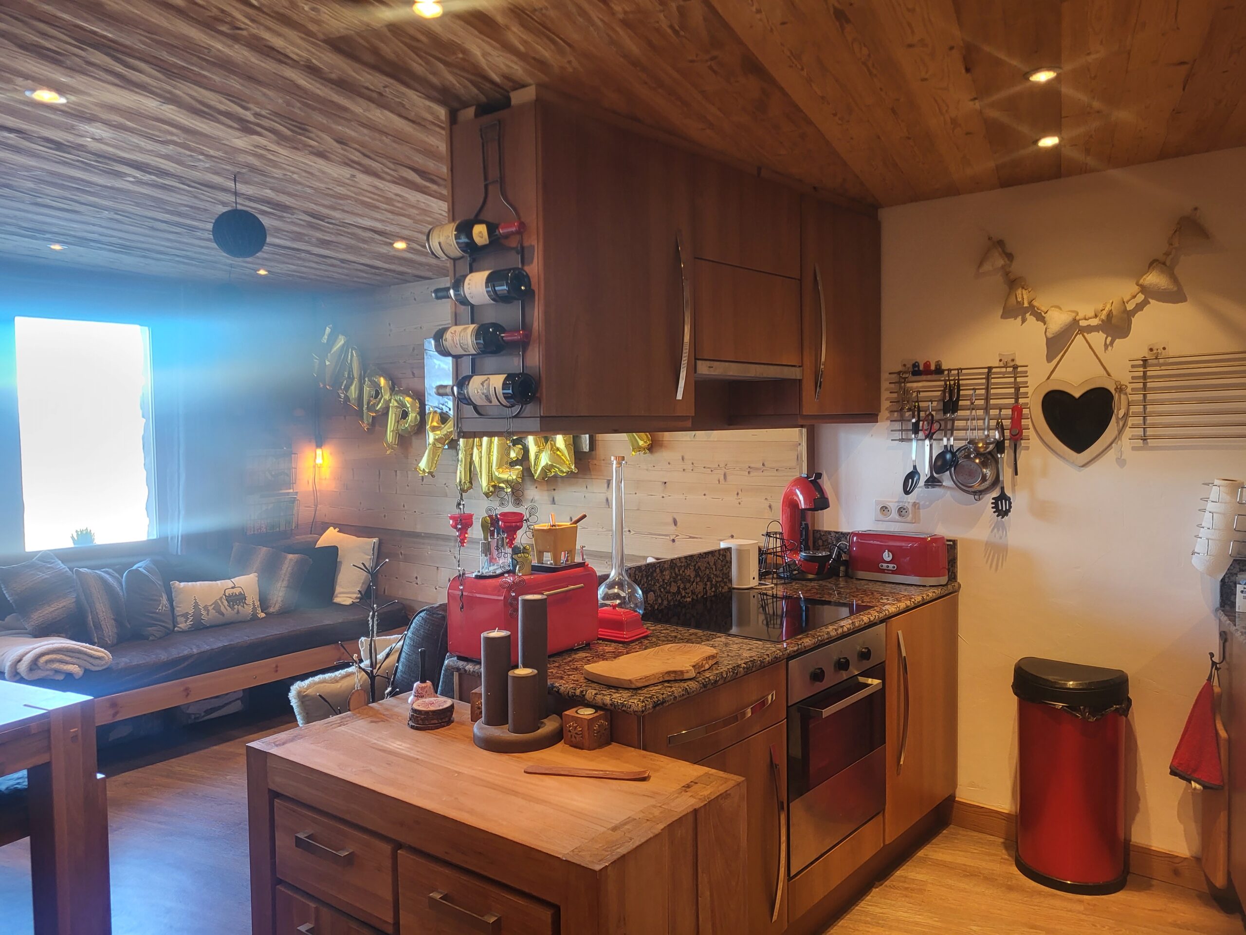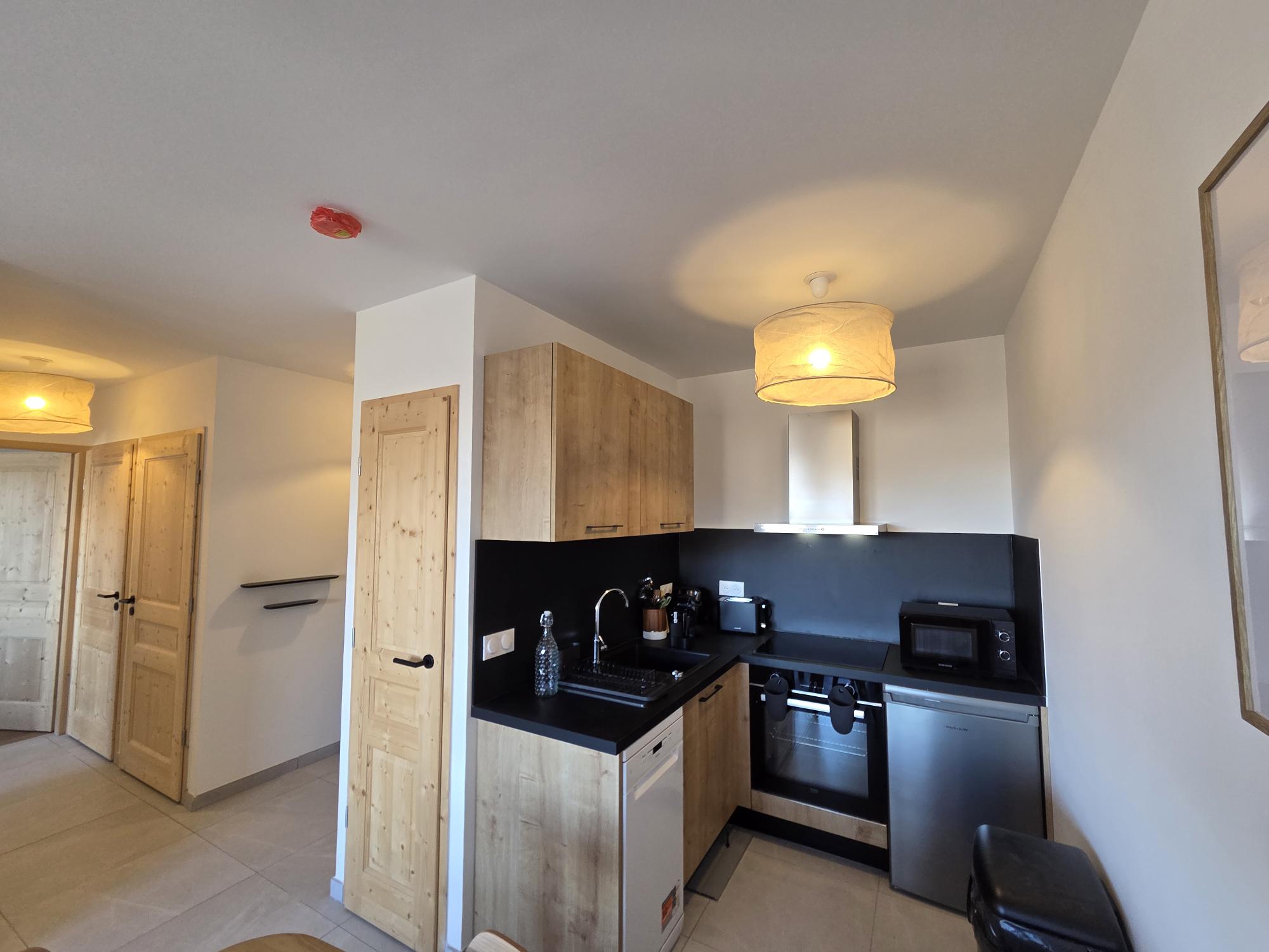 Appartements du 3 Pièces au 5 Pièces Duplex à partir de 579 000 € vendus avec cuisine équipée, cave, ski room et emplacement de stationnement intérieur en sous-sol, accès direct par ascenseur.