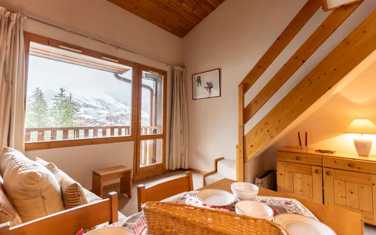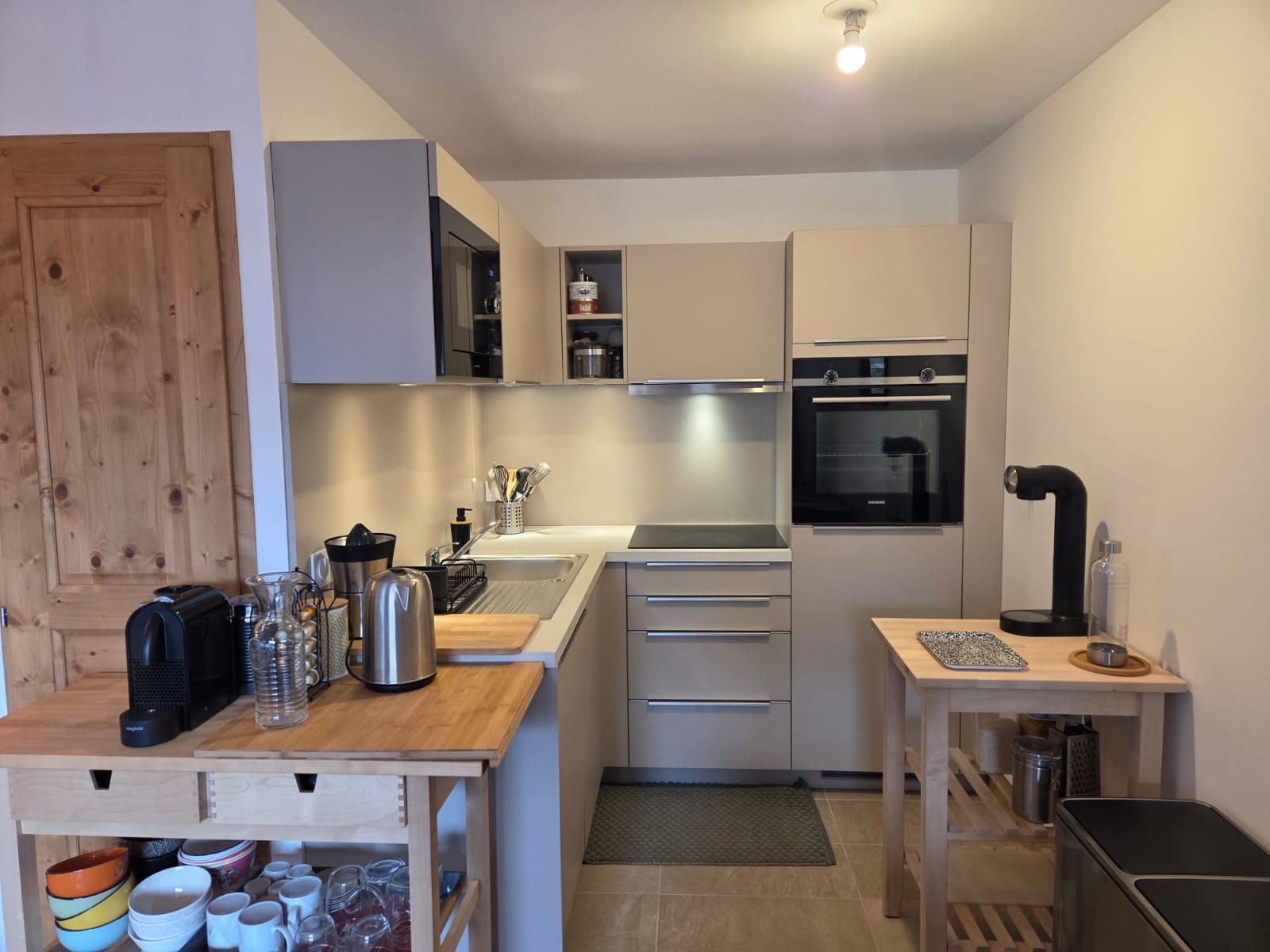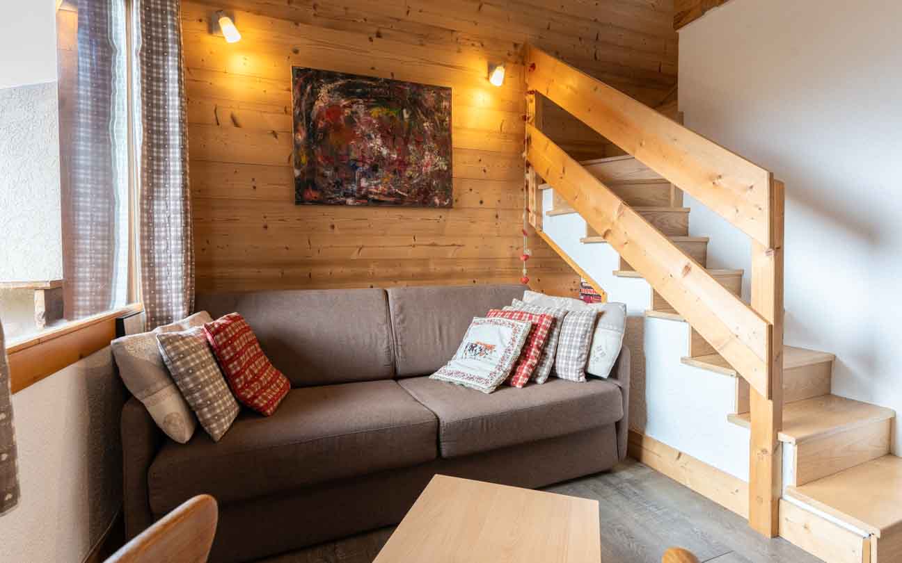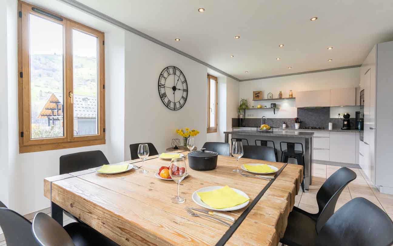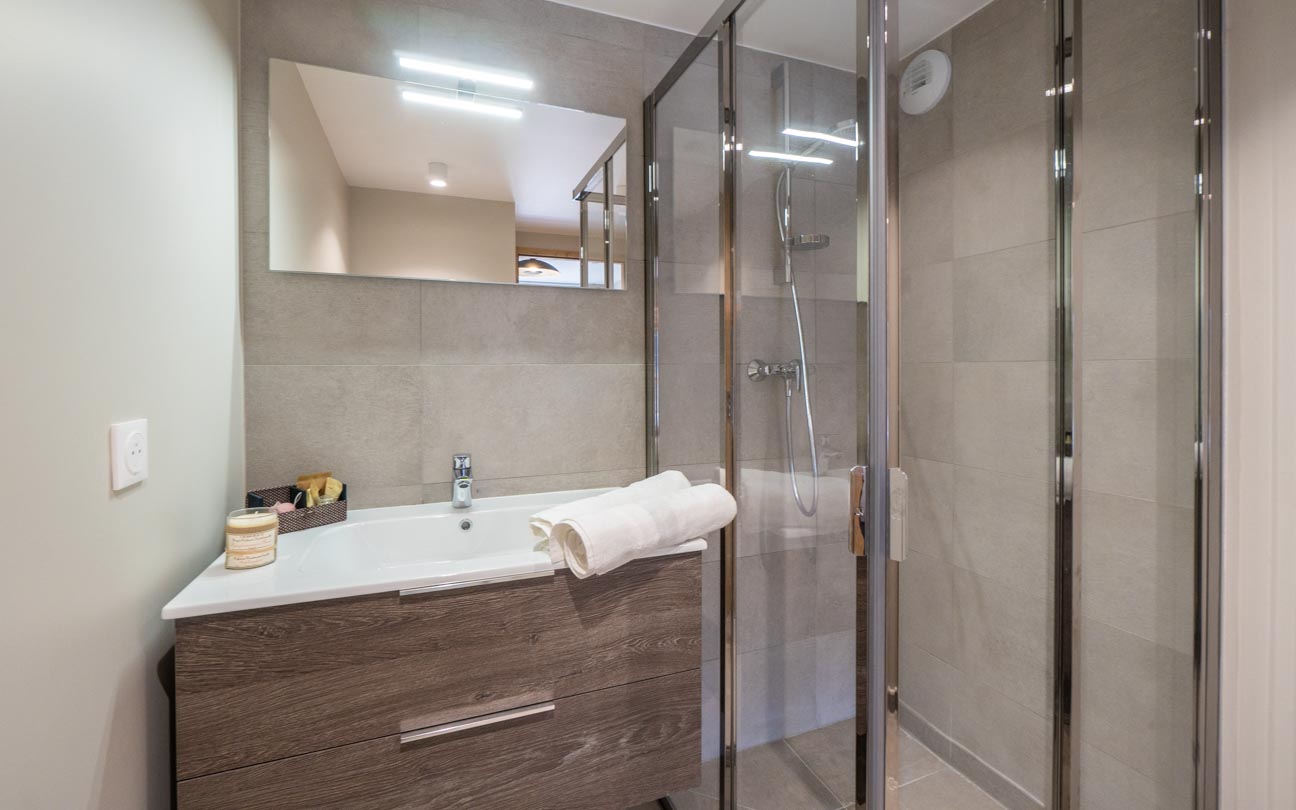 Appartements du 3 Pièces au 5 Pièces Duplex à partir de 579 000 € vendus avec cuisine équipée, cave, ski room et emplacement de stationnement intérieur en sous-sol, accès direct par ascenseur.