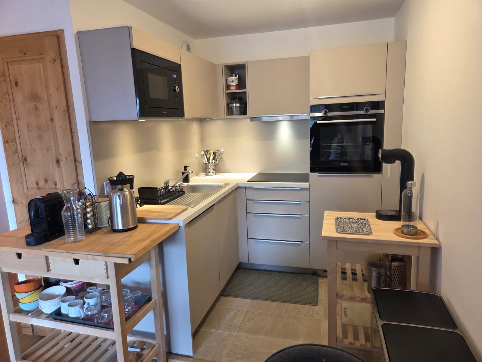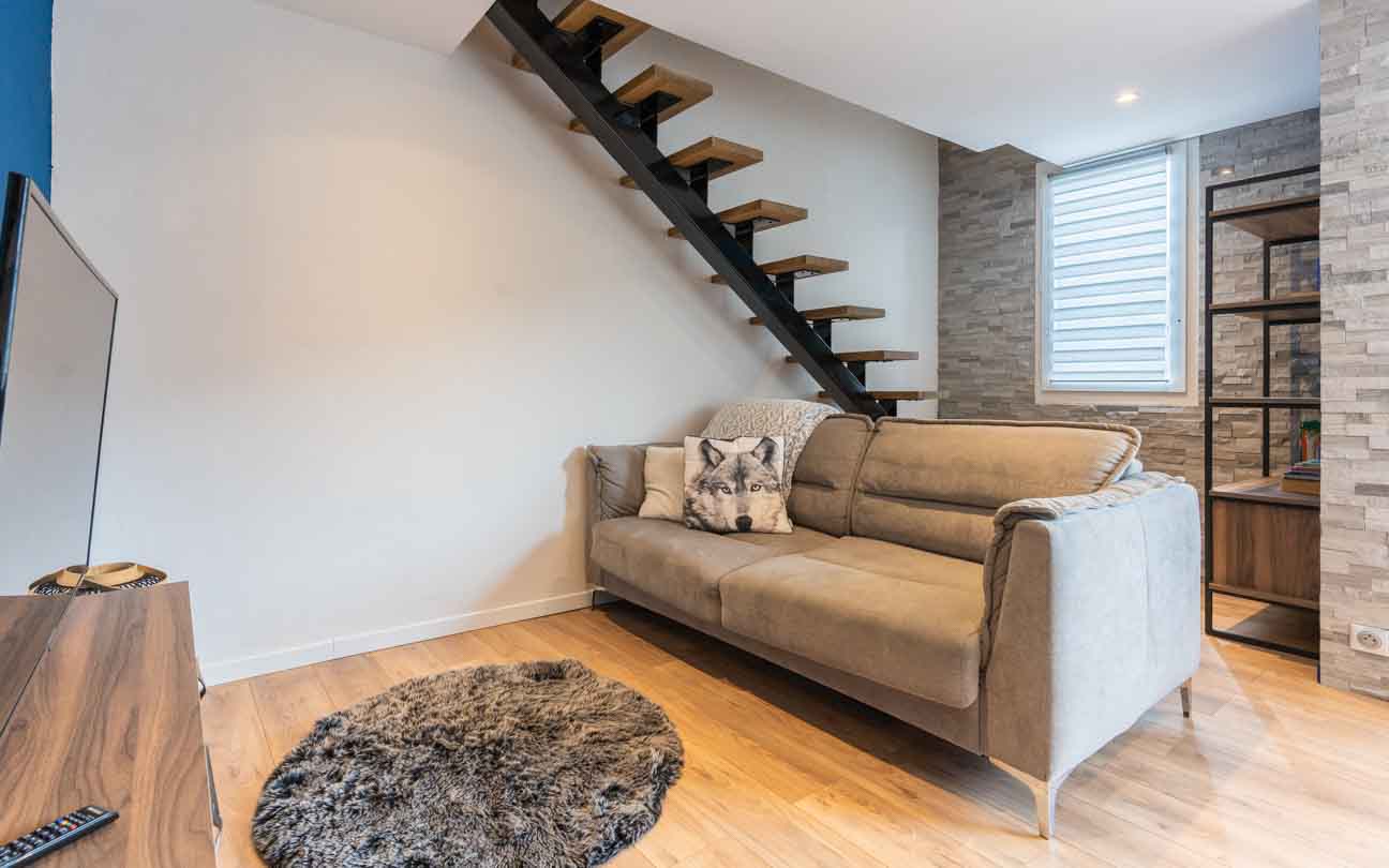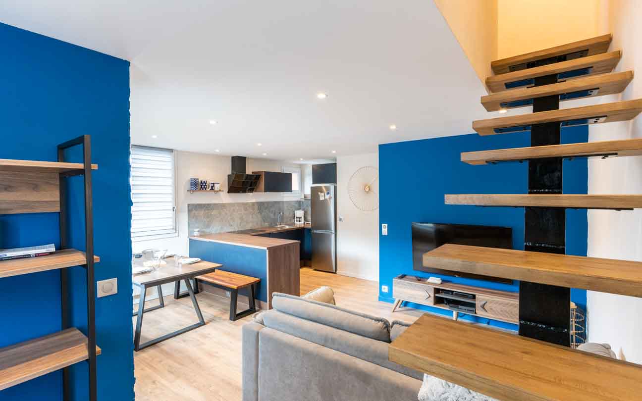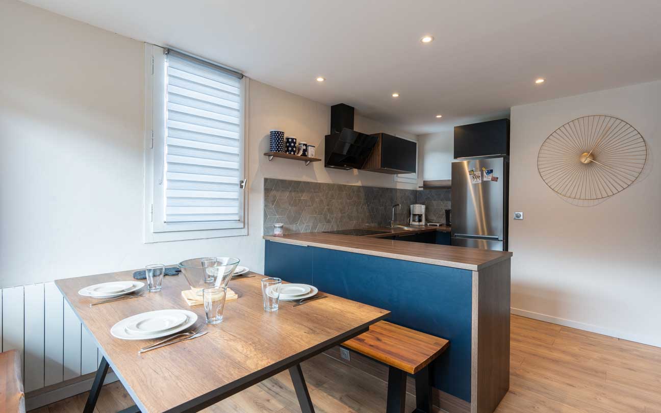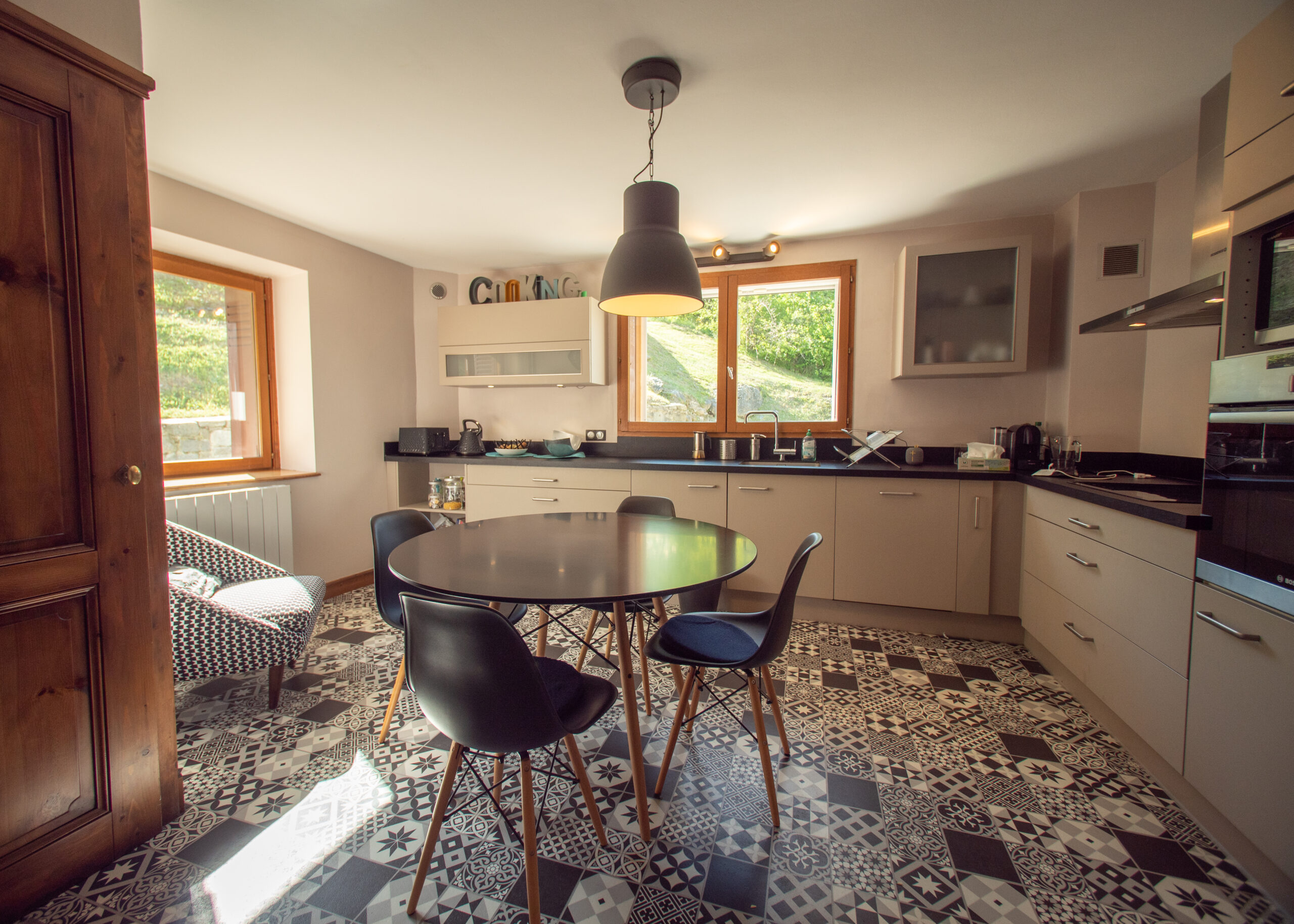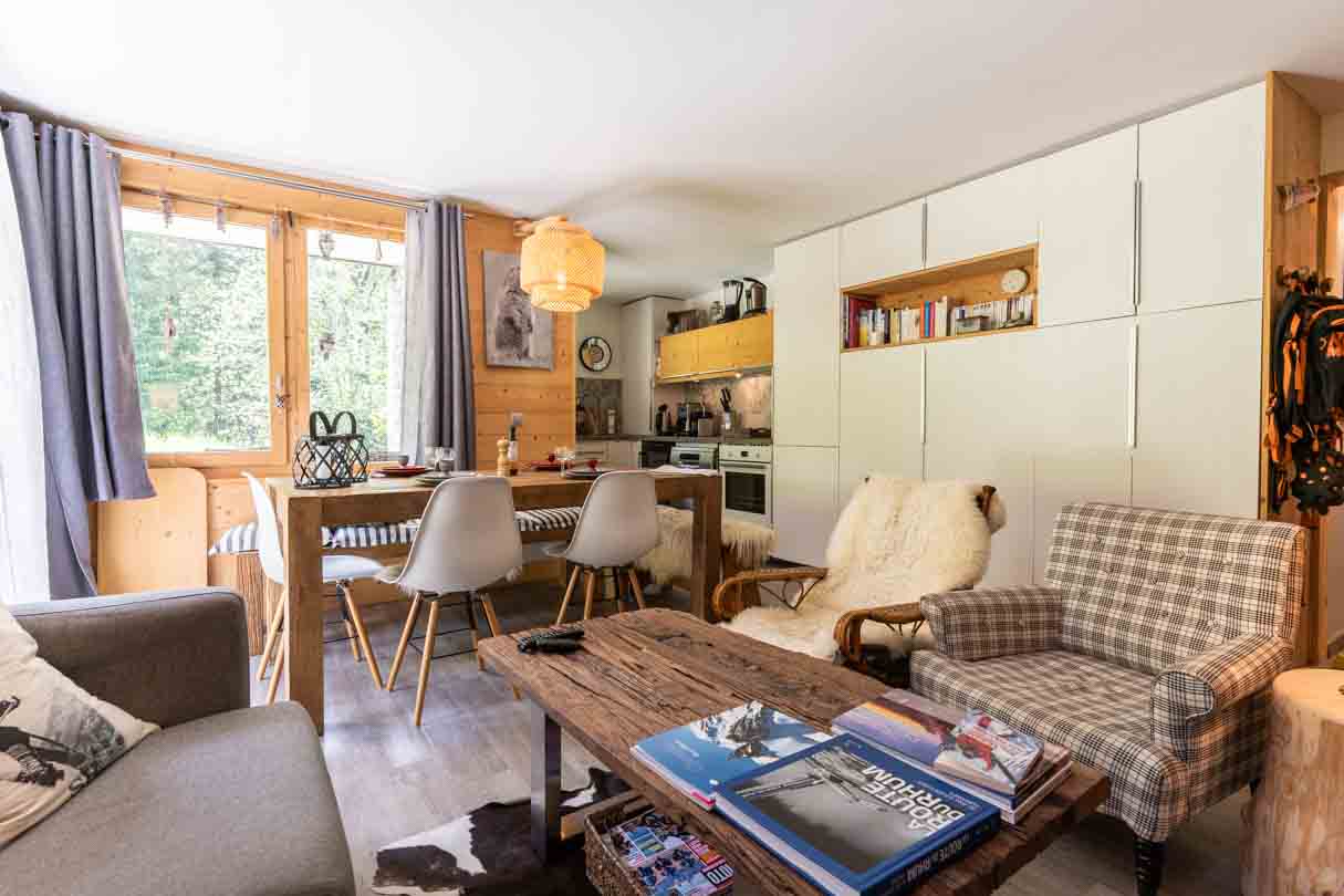 Appartements du 3 Pièces au 5 Pièces Duplex à partir de 579 000 € vendus avec cuisine équipée, cave, ski room et emplacement de stationnement intérieur en sous-sol, accès direct par ascenseur.