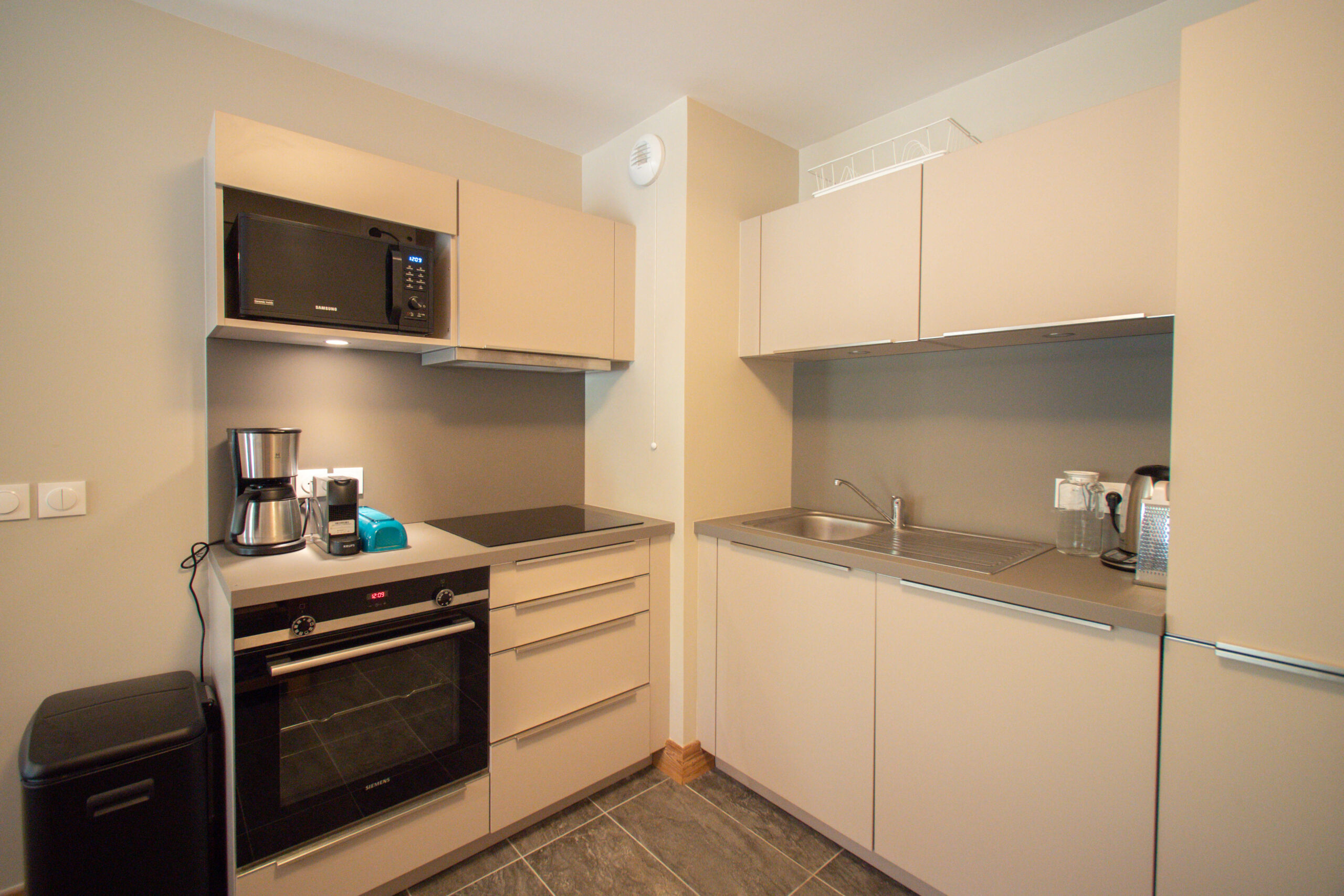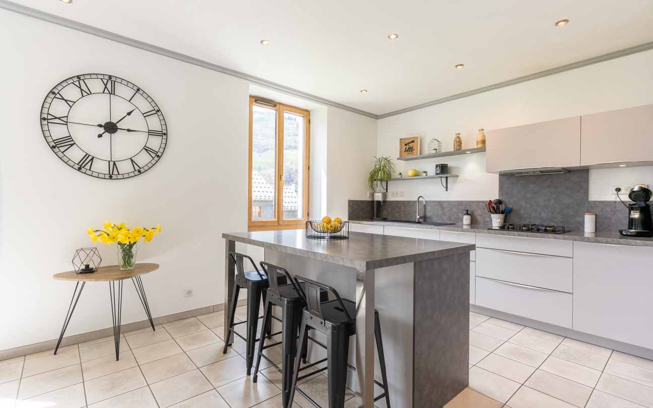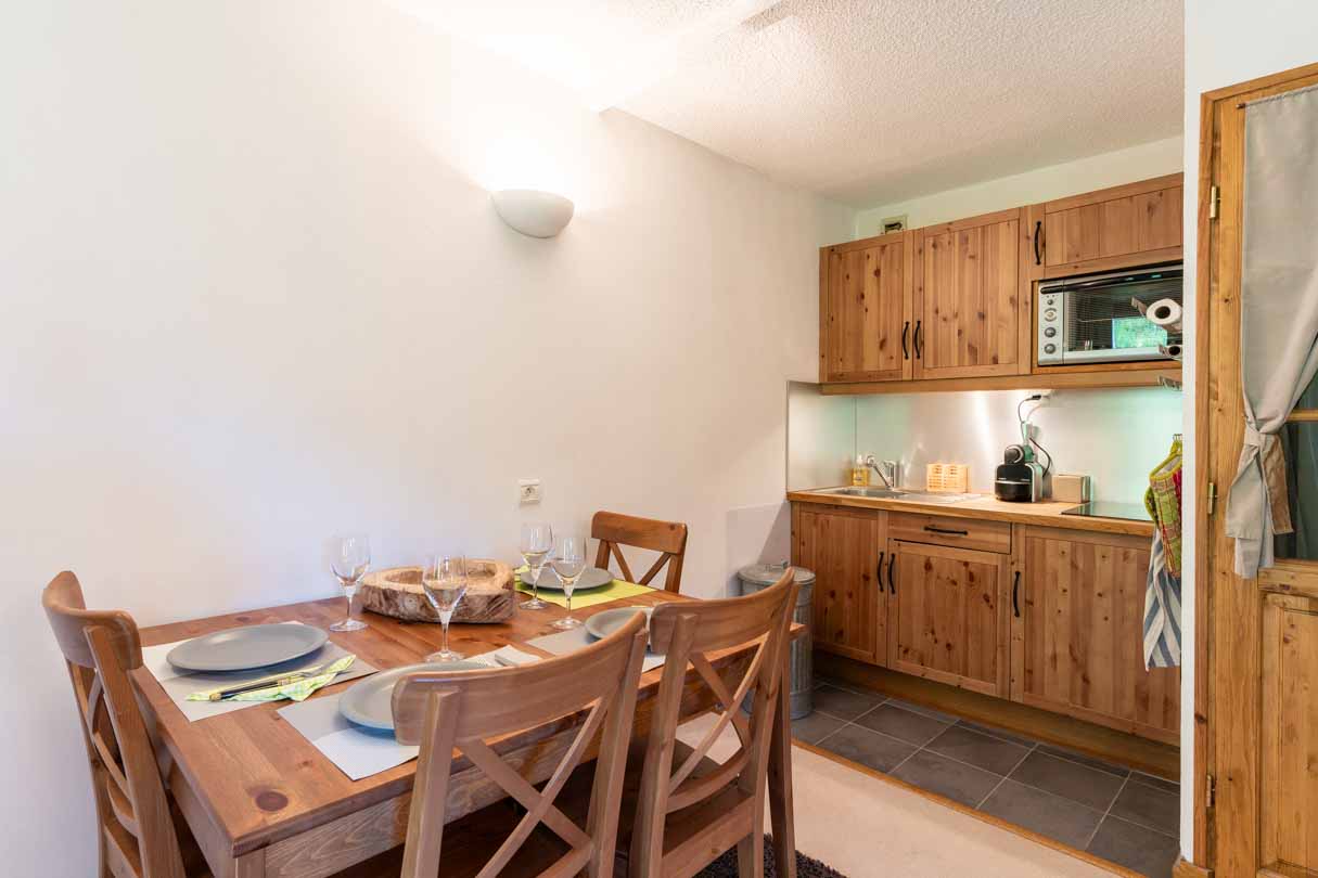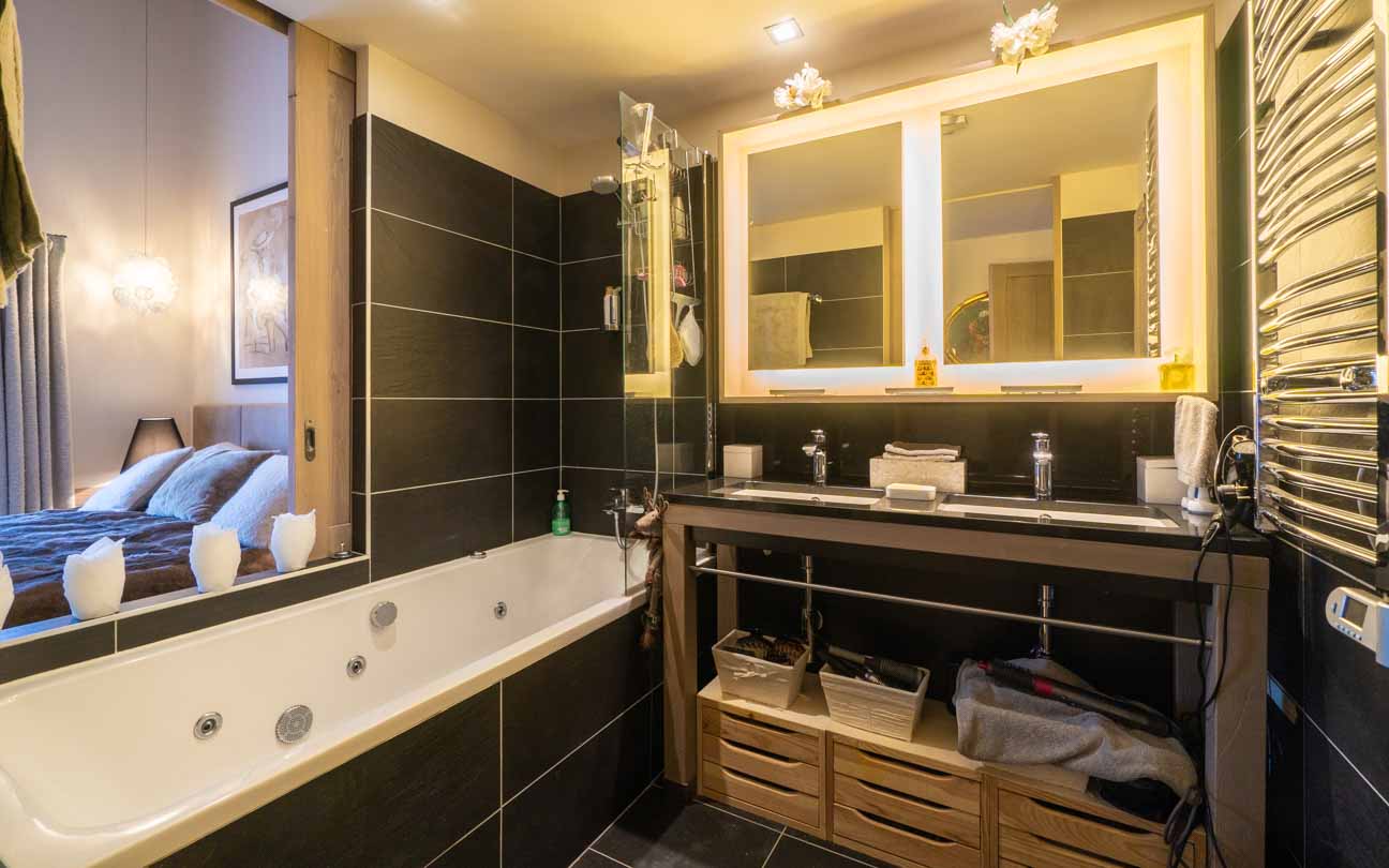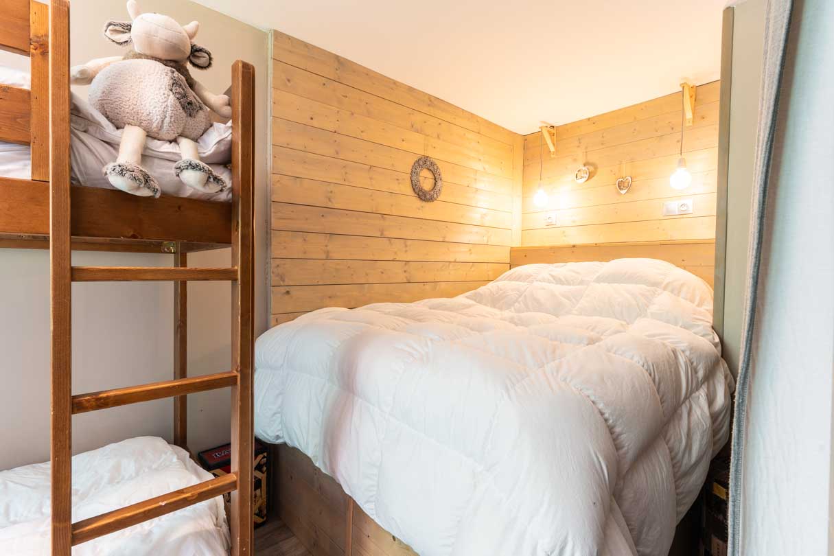 Appartements du 3 Pièces au 5 Pièces Duplex à partir de 579 000 € vendus avec cuisine équipée, cave, ski room et emplacement de stationnement intérieur en sous-sol, accès direct par ascenseur.