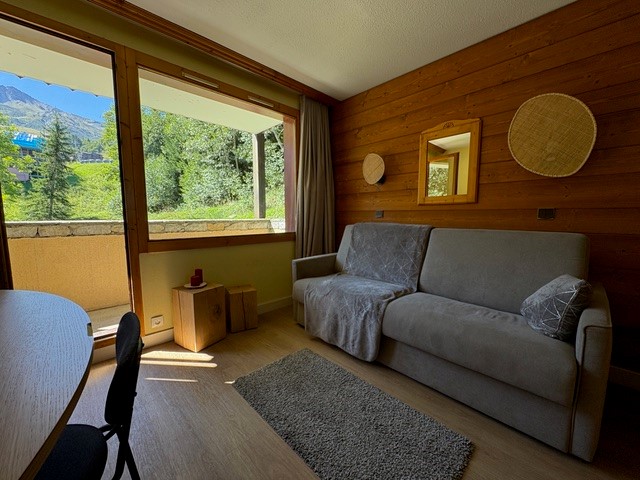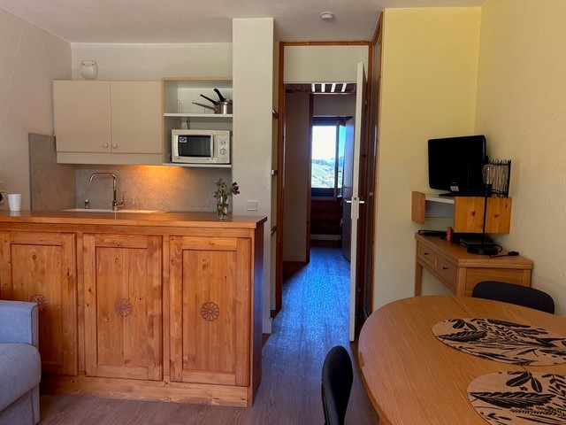Deux pièces rénové et chaleureux situé hameau de la Fontaine, résidence avec ascenseur et à proximité immédiate du télésiège des "Lanchettes", départ/retour skis aux pieds. Entrée, wc, salle de bains, rangements , chambre avec fenêtre nord, cuisine équipé ouverte sur la pièce principale, accès depuis celle-ci au balcon exposé Sud. Deux pièces vendu meublé et équipé avec une cave et la jouissance exclusive et particulière d'un casier à skis.