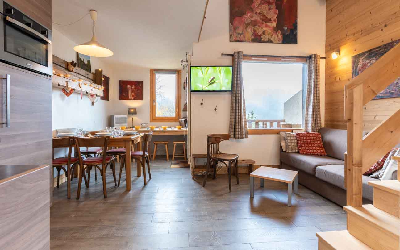 composed of entrance hall with storage and shoe dryer (5m²58), wc (1m²24), bathroom with balneo bathtub (3m²06), independent equipped kitchen (6m²81), parental bedroom (8m²41 Carrez+7m²31 <1m80 height), bedroom n°2 in alcove (6m²91 <1m80 height), main room 26m²96 Carrez+10m²74<1m80 height), independent balcony access from main room, magnificent view on Crève-Tête crest, Gollet pass. ...
